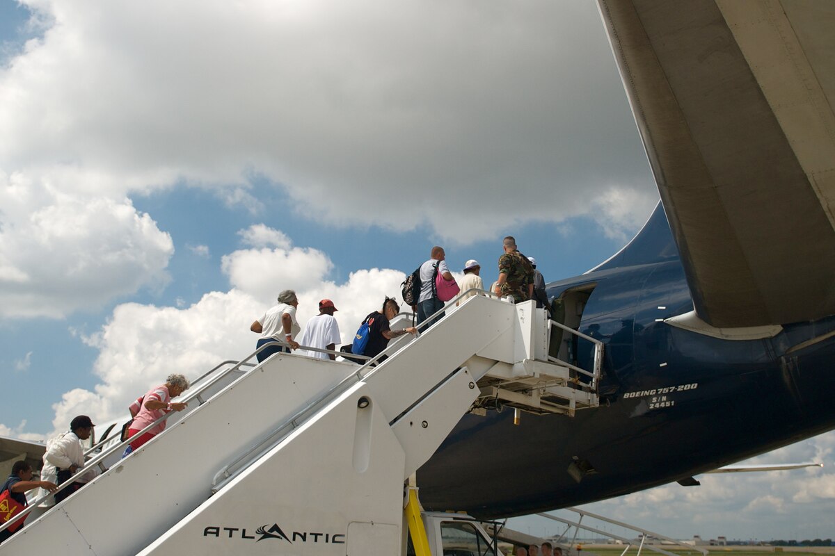 Senior Airman Richie Snow of the Kentucky Air Guard's 123rd Contingency Response Group checks bus tires for foreign object debris before allowing them to enter the base flightline on Sept. 6. The bus was carrying Hurricane Gustav evacuees, who were on base to catch a return flight home. (Photo by Capt. Dale Greer, Kentucky Air National Guard).